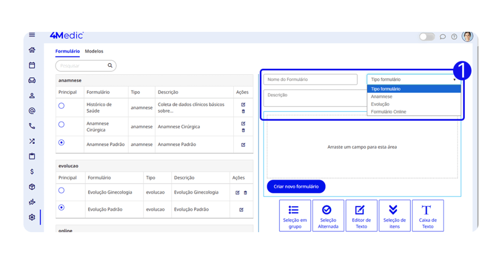 1. No canto esquerdo da tela, o sistema exibirá a lista de formulários criados.