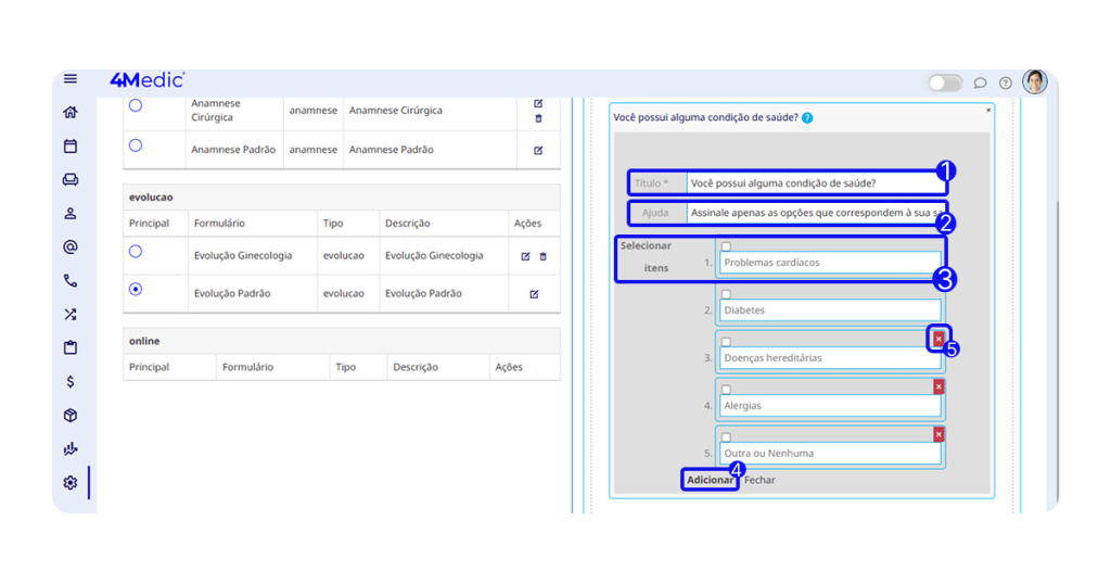 2. Em Ajuda, adicione uma descrição para orientar o paciente na resposta.