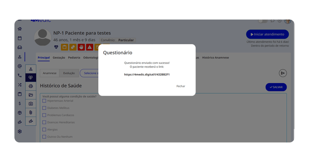 Com esse processo simples, você consegue criar, personalizar e enviar formulários online, garantindo mais praticidade, organização e agilidade no atendimento aos seus pacientes. Sempre que necessário, repita esses passos e mantenha seus formulários atualizados.