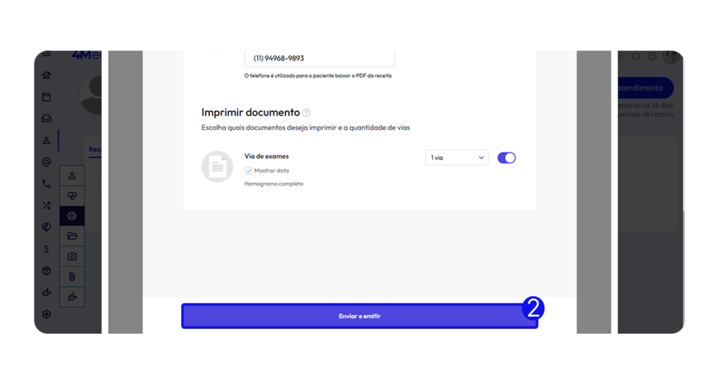 1. Em Emitir Receita, preencha o Número de telefone no campo indicado.