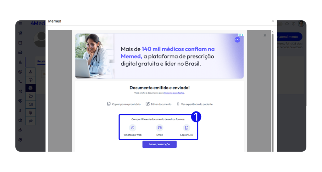 💡 O envio por SMS é realizado gratuitamente pela Memed.