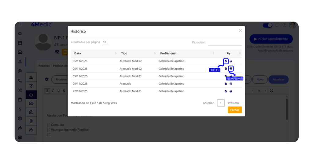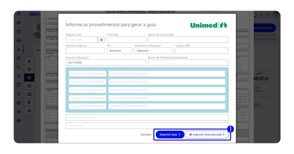 Com esse processo simples, você consegue gerar, assinar e enviar impressos clínicos de forma rápida e segura, garantindo mais agilidade e organização no atendimento. Sempre que necessário, repita esses passos e mantenha os registros dos pacientes sempre atualizados.