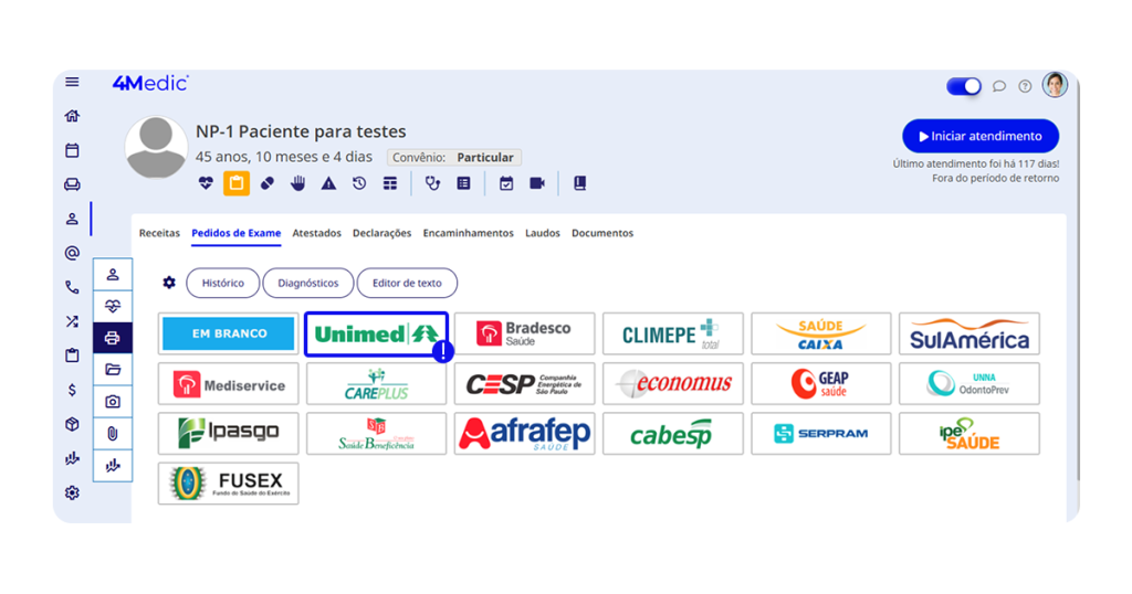 - Selecione a guia do convênio desejado (exemplo: Unimed).