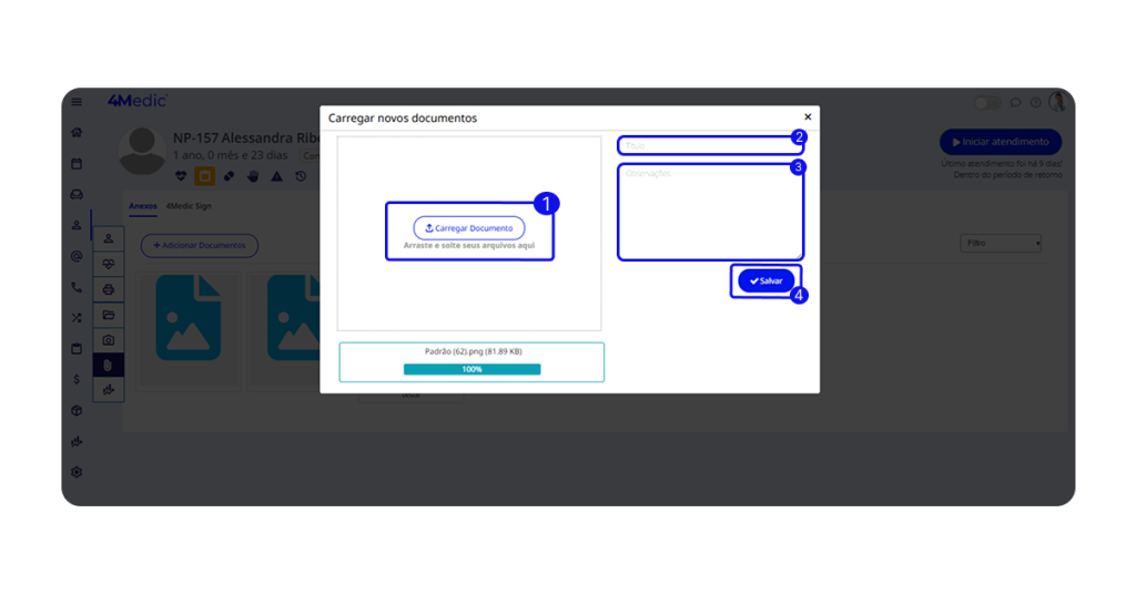 Com esse processo simples, você consegue organizar e gerenciar todos os documentos administrativos dos pacientes de forma segura e centralizada, garantindo mais praticidade no dia a dia da clínica. Sempre que necessário, repita esses passos para manter o histórico atualizado e completo.