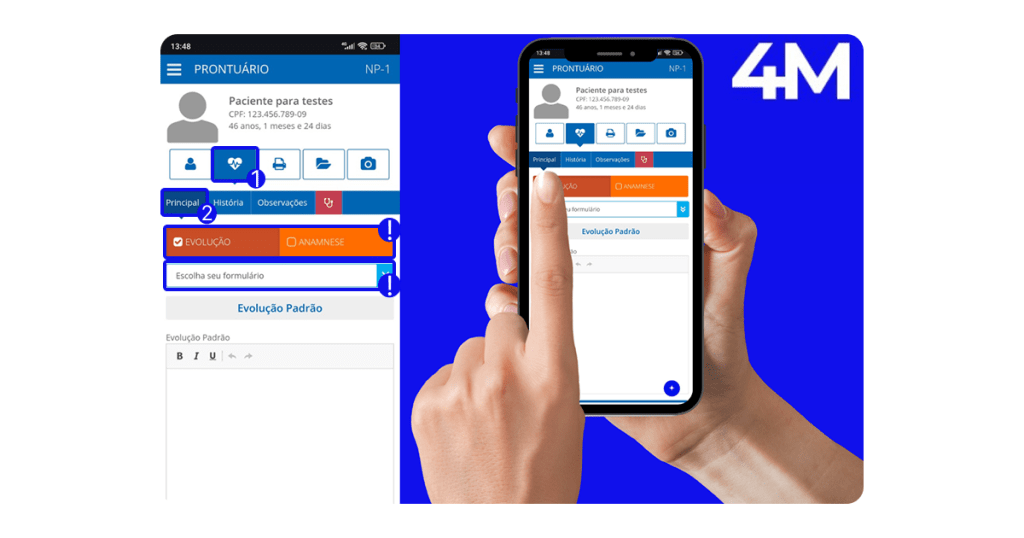 - Escolher entre Anamnese ou Evolução;