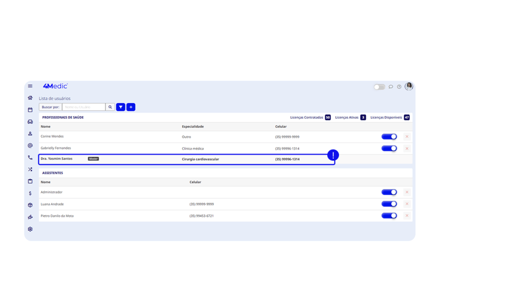 - A 4Medic não realiza migração de Agenda nem do Financeiro.
