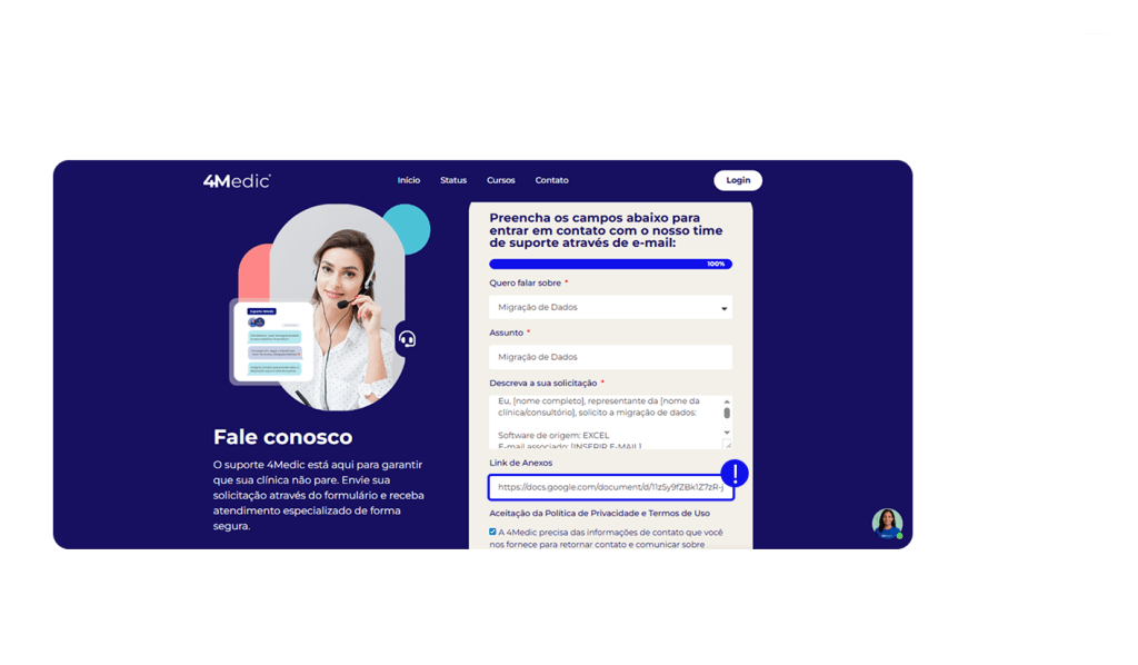 📬 A equipe da 4Medic entrará em contato por e-mail para agendar um dia e horário para a migração. Fique atento à sua caixa de entrada.