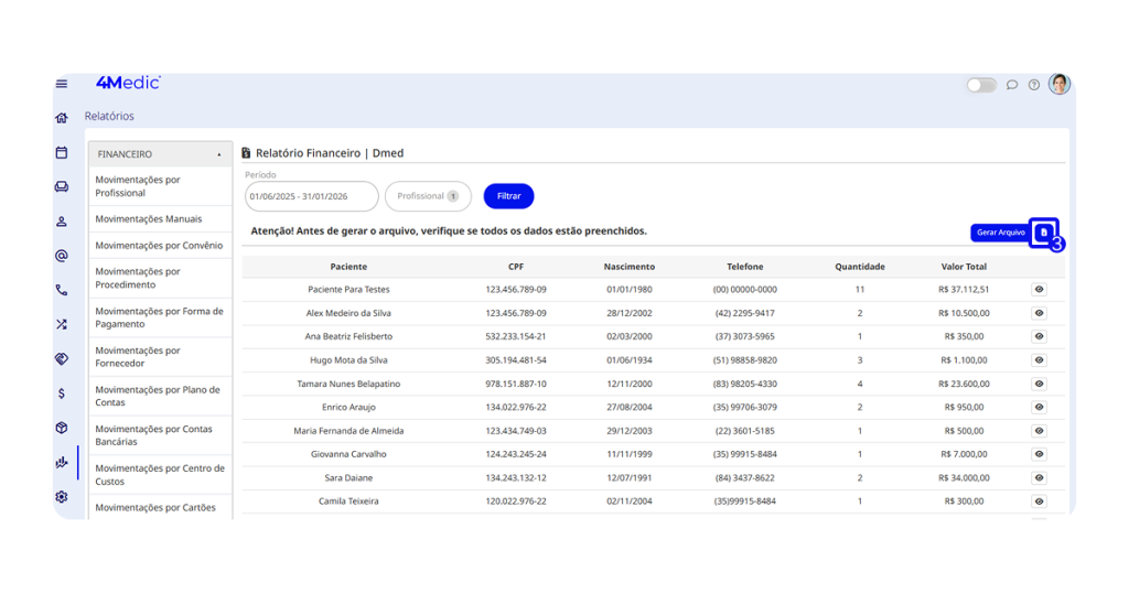 Neste tutorial, você aprenderá como gerar, imprimir e exportar o relatório DMED (Declaração de Serviços Médicos e de Saúde), um documento importante que deve ser enviado à Receita Federal.