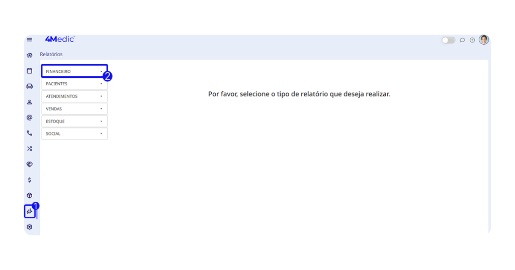 1. No menu lateral esquerdo, clique em Relatórios.