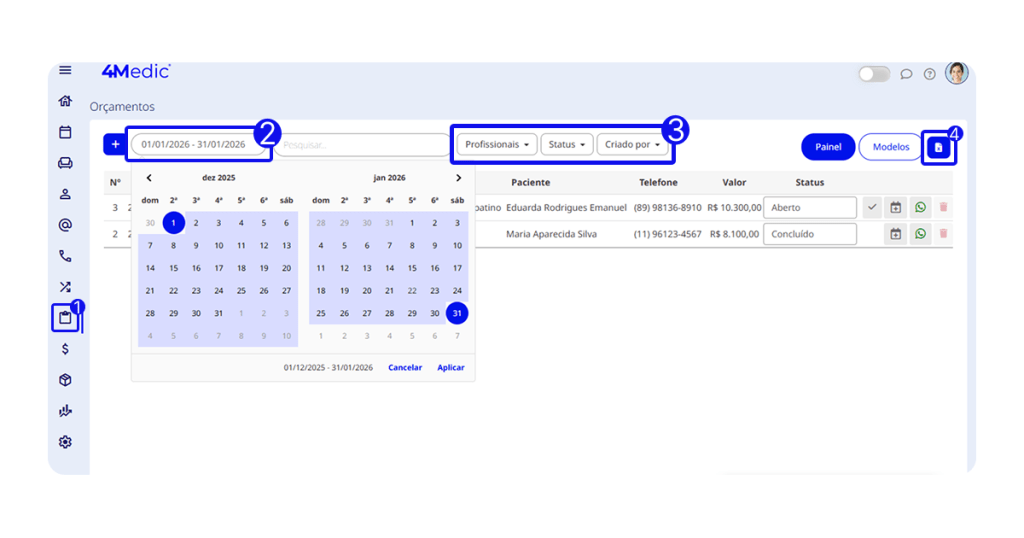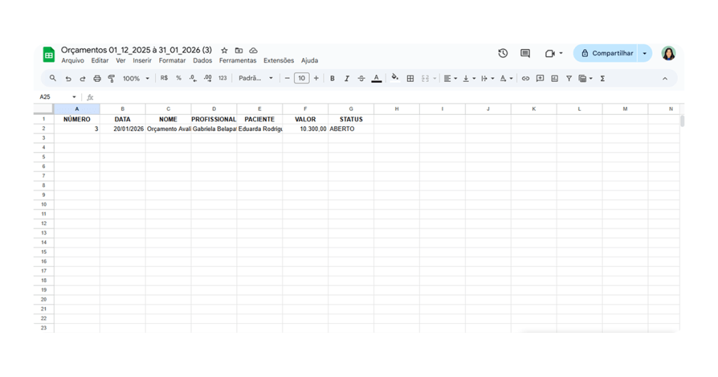 Com esse processo simples, você consegue visualizar, analisar e exportar os relatórios de orçamentos, garantindo mais controle financeiro e melhor tomada de decisão na gestão da clínica. Sempre que necessário, repita esses passos e mantenha o acompanhamento dos seus dados atualizado.