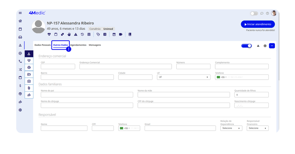 - Código de Cadastro: preencha este campo caso o prontuário físico possua uma numeração de identificação diferente da plataforma.