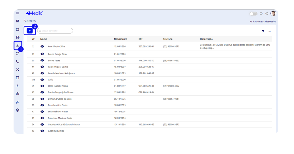 - Vá ao menu “Pacientes”;
