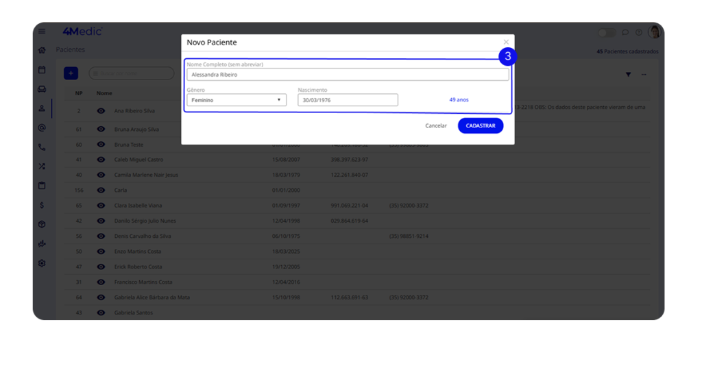 Com esse processo simples, você consegue cadastrar e manter os prontuários dos pacientes sempre atualizados, garantindo registros completos, organizados e seguros. Sempre que necessário, revise e atualize as informações para manter o histórico em dia.