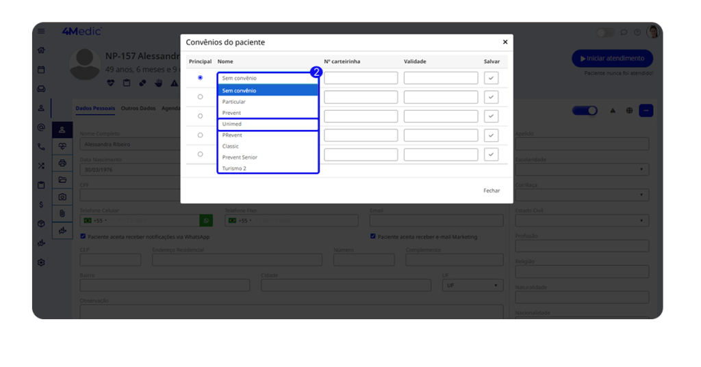 2. Selecione o convênio do paciente.