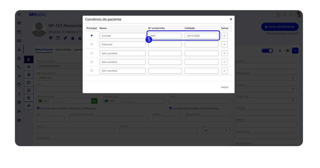 5. Preencha o número da carteirinha e a data de validade.